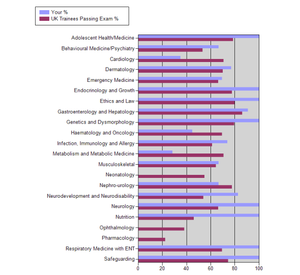 For result letters, Mast were able to significantly improve the level of feedback candidate receive. As well as top level details of their personal performance, such as whether they passed or failed and their pass mark, Mast added graphs showing their performance on each topic area of the exam compared to the average mark of those who passed.