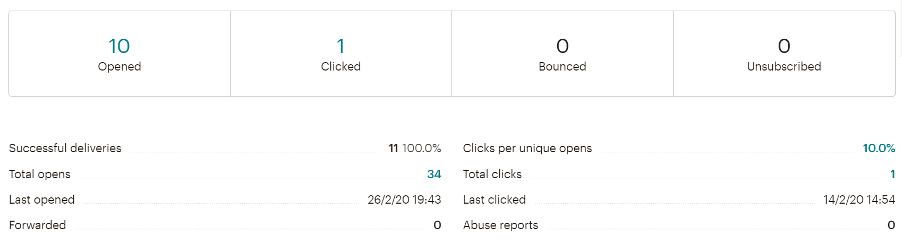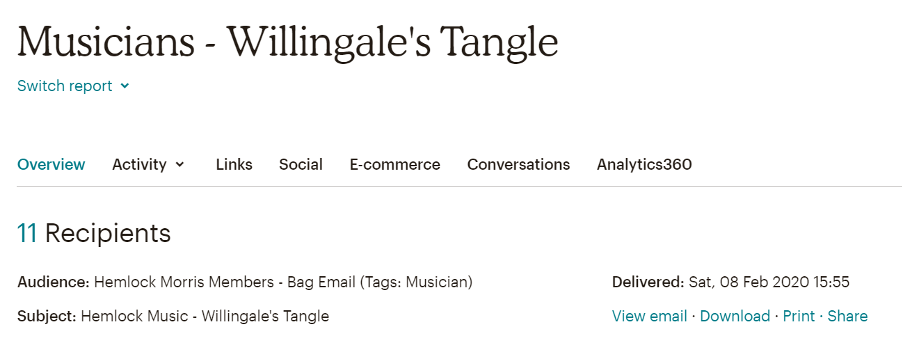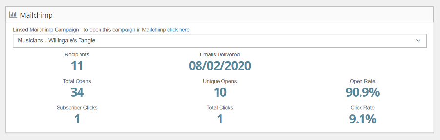 …and I can see that this matches with what is reported in MailChimp. Here, we can see that one of our musicians has ignored the email I sent them with some exciting and useful information about the tune for a new dance I wanted to teach at practice sessions.